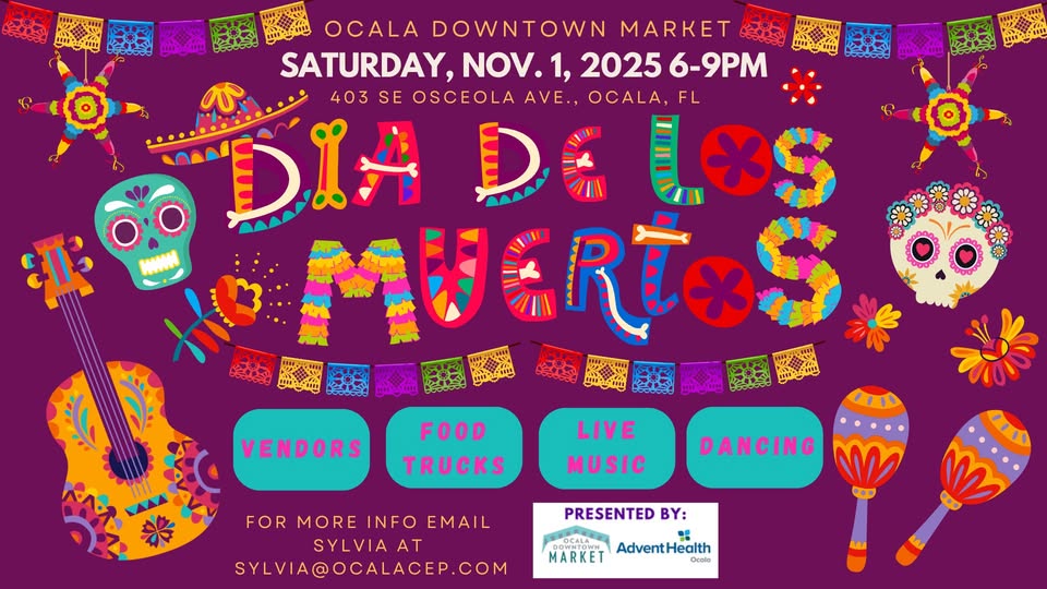 Día de los Muertos Holiday Market Celebrate Life, Culture, and Community! Date: Nov. 1, 2025 Time: 6-9pm Location: Ocala Downtown Market403 SE Osceola Ave, Ocala, FL, United States, Florida LIVE MUSIC | DANCING | VENDORS […]